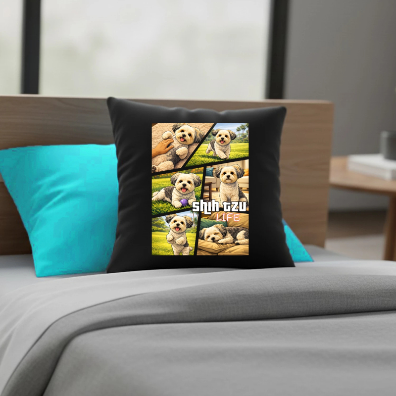 Miękka i wygodna czarna poduszka z nadrukiem to doskonały pomysł na podarunek niemal dla każdego. Wymiary poduszki 38x38cm. Cena zawiera komplet: poszewkę z nadrukiem oraz wypełnienie.