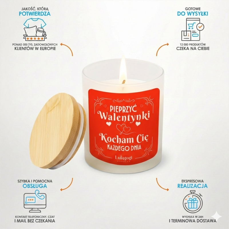 Stylowa świeca zapachowa, która nie tylko relaksuje waniliowym aromatem, ale też bawi trafnym tekstem na etykiecie. Naturalny wosk sojowy pochodzenia roślinnego, wegański, bez dodatków parafiny i innych wosków roślinnych, biodegradowalny, nietoksyczny. Umieszczona w eleganckim, szklanym pojemniku z bambusowym wieczkiem, doskonale sprawdzi się jako prezent lub oryginalny dodatek do wnętrza. Na świecy znajdziesz zabawny napis - idealny dla osób z dystansem i poczuciem humoru. Waga wosku 170g, czas palenia 40h.