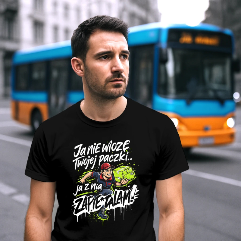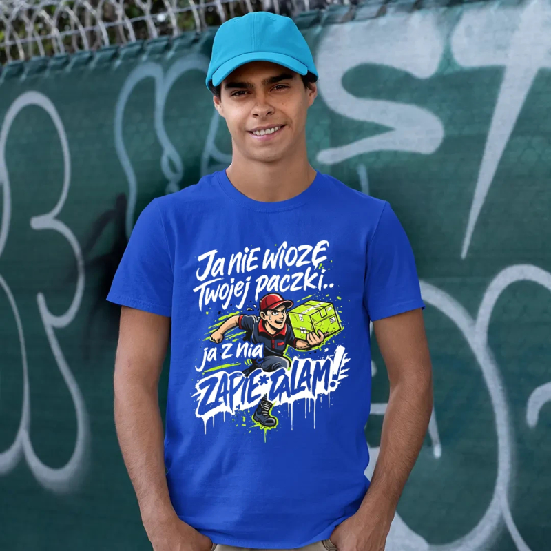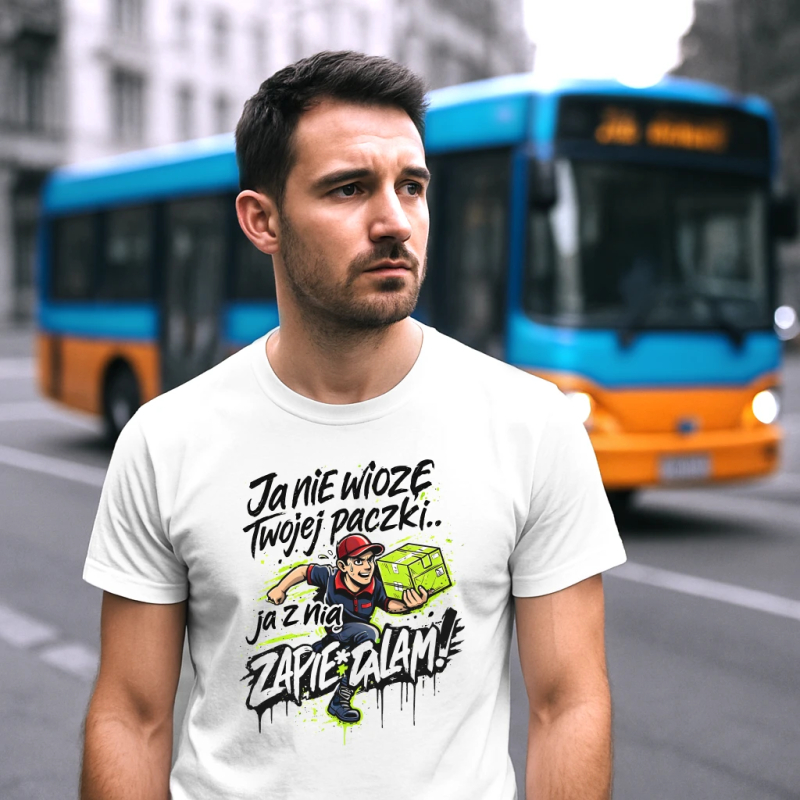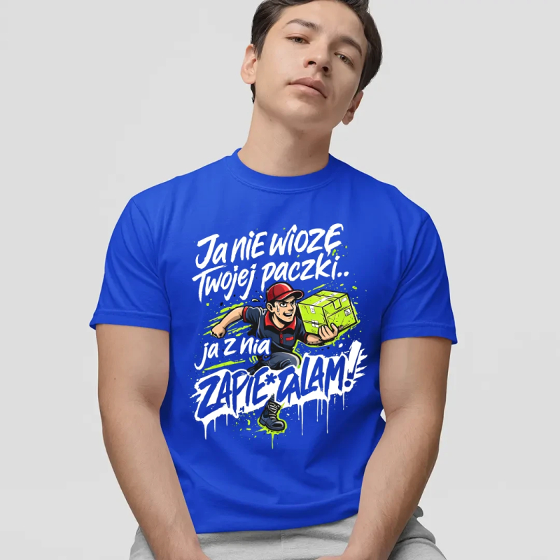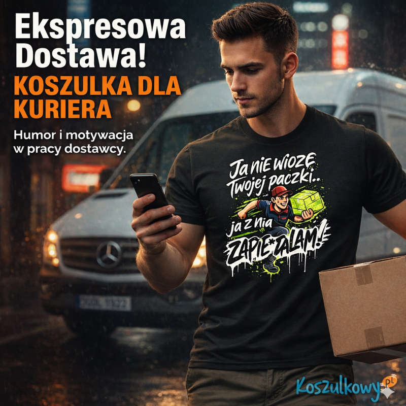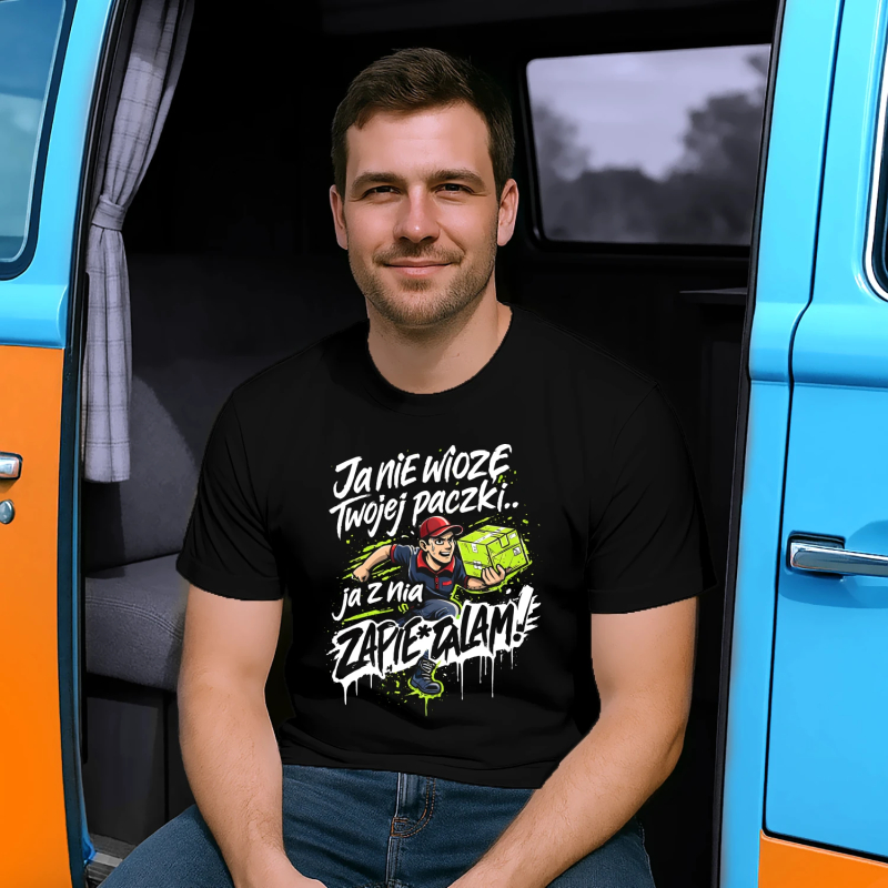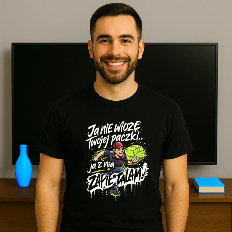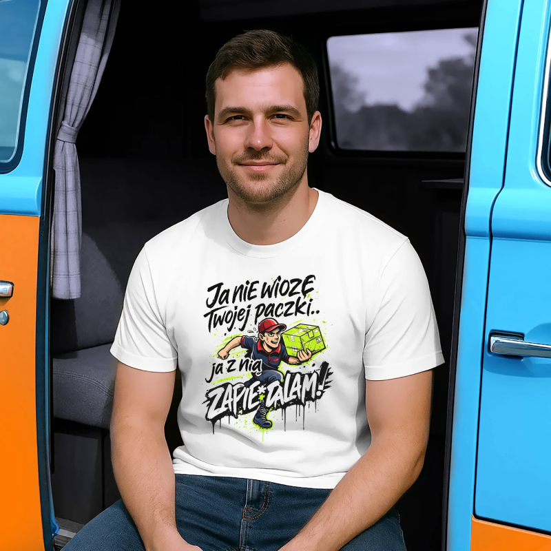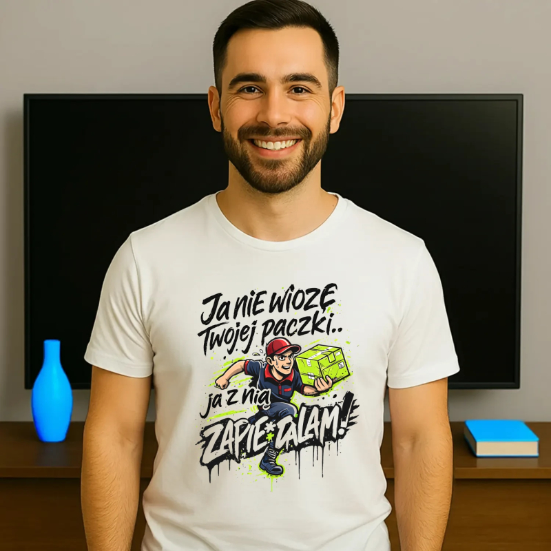Koszulka męska, bawełniana z nadrukiem dla kuriera. Spodoba się każdemu kurierowi! Super pomysł na prezent. Zamów dla kogoś bliskiego.